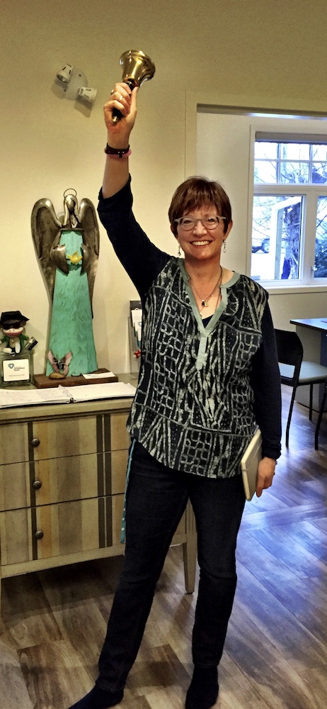 After a month of living at Compassion House, in Edmonton, while undergoing radiation treatment, I am now home. Actually, this week I will be temporarily at home. Tomorrow, I go into the city to watch Beatrice, my radiation buddy, who is 84 (or 85), ring the radiation bell to shout that her treatment is done. Then on Wednesday I have another medical appointment/check in, but I will balance that with a massage! And then on Friday, my friend Paula will drive me in for another treatment (some call it 'chemo maintenance'); this is the one (IV Herceptin) that I will get every three weeks, at the Cross Cancer Institute, for a year. Then, phew(!), I will be at home. (and once I am home, and in between resting & recovering, I will share with all of you about Compassion House, the people I met and my journey)
